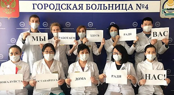 Накануне на YouTube появился небольшой клип о том, как проходит карантин в городской больнице №4 в Улан-Удэ. Под жизнеутверждающую музыку в видео показаны пустые коридоры больницы, таблички на кабинетах, дезинфекторы и медицинское оборудование. В ролике мелькает медперсонал, вынужденный жить в больнице 14 дней вместе с пациентами.