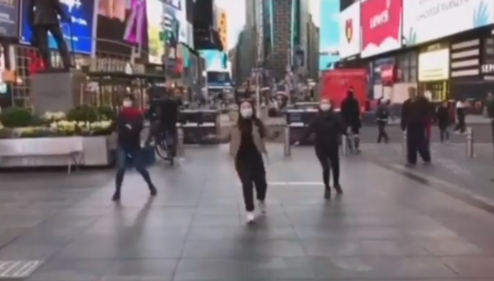 Уроженцы Бурятии, проживающие сейчас в Нью-Йорке, присоединились к модному бурятскому челленджу и станцевали «БурМоДэнс» на опустевшей улице крупнейшего американского города. Три девушки в масках немного по-своему исполнили движения вирусного челленджа, запущенного балетмейстером театра «Байкал» Арсаланом Сандановым.