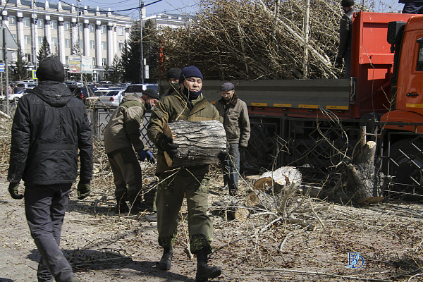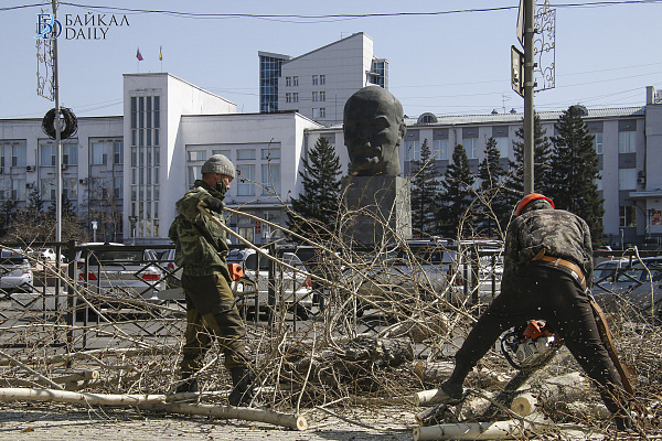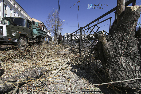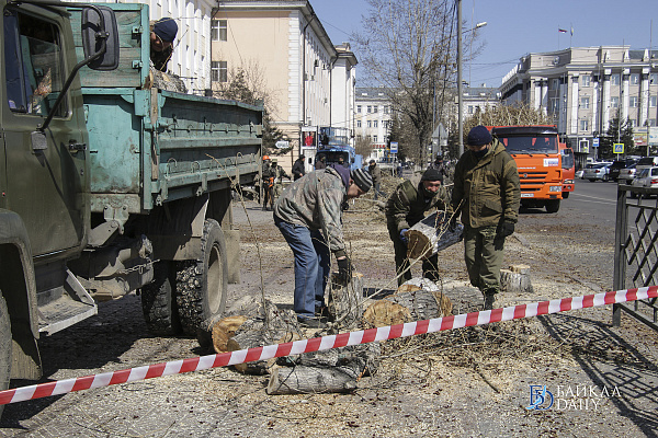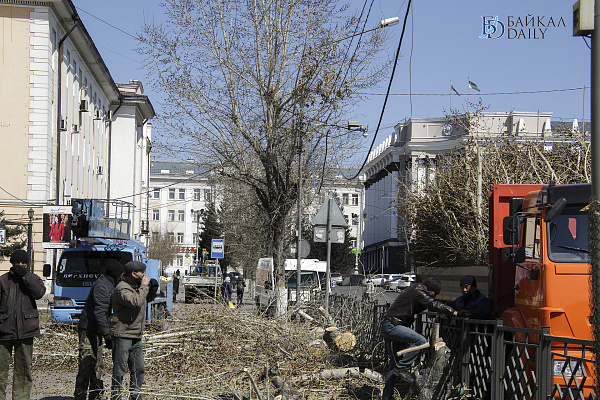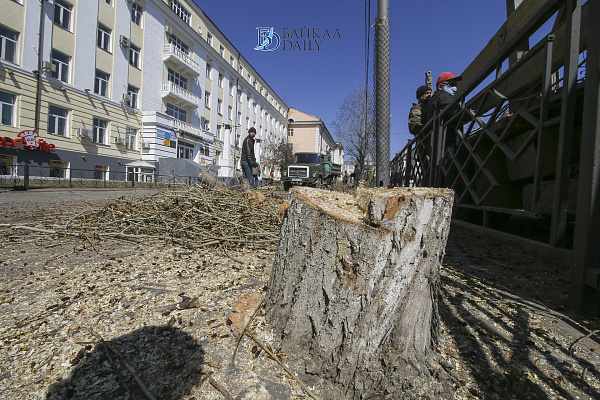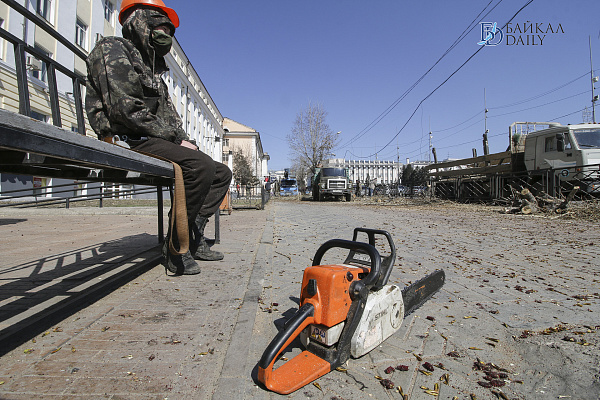 Как сообщал «Байкал-Daily», накануне стало известно о том, что в районе площади Советов вырубят высокие тополя, сейчас служащие здесь единственным источником тени в жару. Рубка началась уже сегодня.