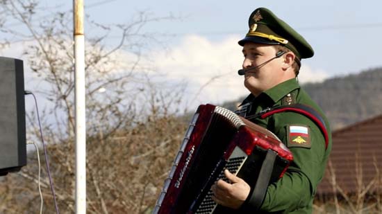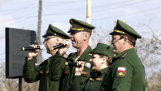 Военные артисты исполнили известные фронтовые песни разных времён, в частности, «Катюша», «От героев былых времён», «Казаки в Берлине», «Баллада о солдате», «День Победы».