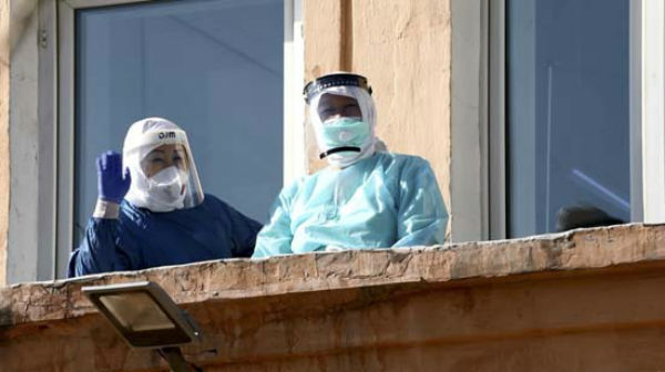 Медицинский персонал собрался у окон больницы и с большим удовольствием послушали популярные музыкальные композиции.