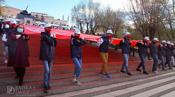 Силами «Волонтёров Победы» и общества «Боевое братство» у Мемориала было развёрнуто Знамя Победы, которое является обязательным символом Победы советского народа и его вооружённых сил над фашистской Германией в войне 1941-1945 годов. 75 лет назад, 30 апреля 1945 года, советские воины водрузили Знамя Победы на крыше горящего здания Рейхстага в Берлине – это стало символом окончания Великой Отечественной войны.