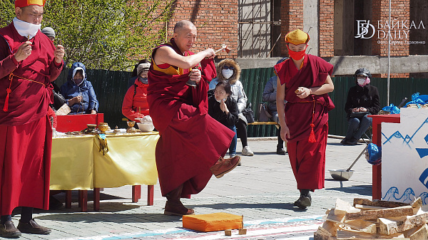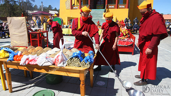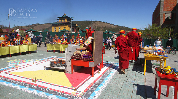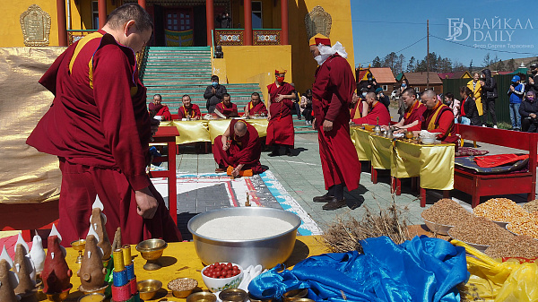 Данный ритуал проходит в завершение 18-дневного большого молебна «Дуйнхор Хурал». Все эти дни ламы с утра и до вечера читали молебны.