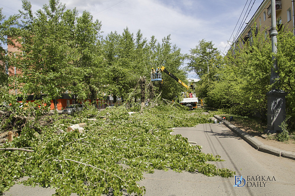 В Улан-Удэ из-за ремонта коммунальных сетей пустили под корень деревья и кустарники по улице Октябрьская.