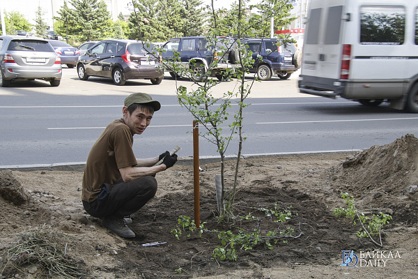 Взамен по улицам Ленина и Сухэ-Батора высадили 35 саженцев яблони, ещё 13 готовят к посадке.