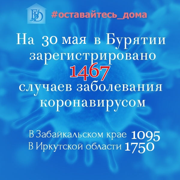В Бурятии на утро 30 мая зарегистрировано 1467 случаев заражения COVID-2019, из них в Улан-Удэ – 810.