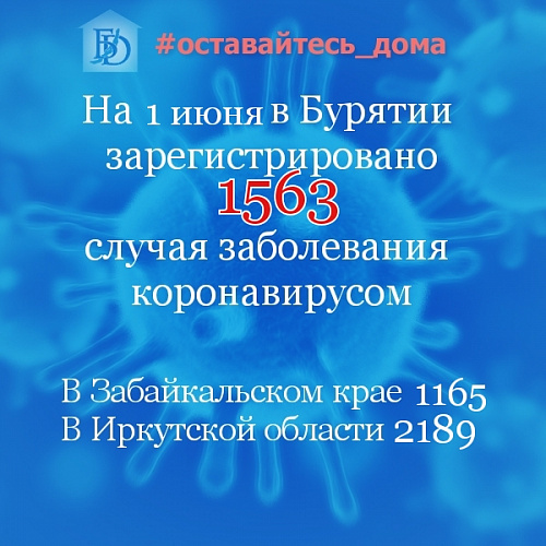 В Бурятии на сегодня 1563 случая заражения COVID-19. За всё время распространения коронавируса в республике успешно завершили лечение и выписались из больниц 854 человека, в том числе накануне выздоровел 31 пациент. Умерли 10 человек. Остальные проходят лечение.