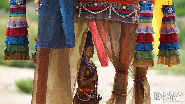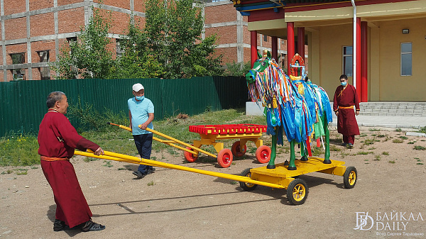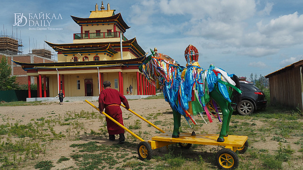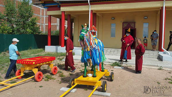 Но в этом году из-за пандемии коронавируса в Иволгинском дацане Бурятии отказались от большого гороо и не стали выносить колесницу и статую Майтреи. Ламы только обошли со статуей Будды будущего Майдари на руках вокруг Согчен дугана.