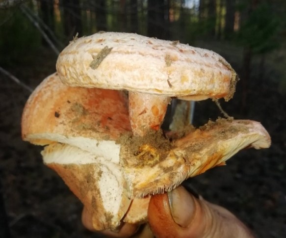 - Вот такой забавный рыжик вчера нашли. На шапочке одного, куда попала земля, пророс второй, как пирамидка! Оба грибочка без червячков! – написала участница группы «Тарбагатай-инфо».