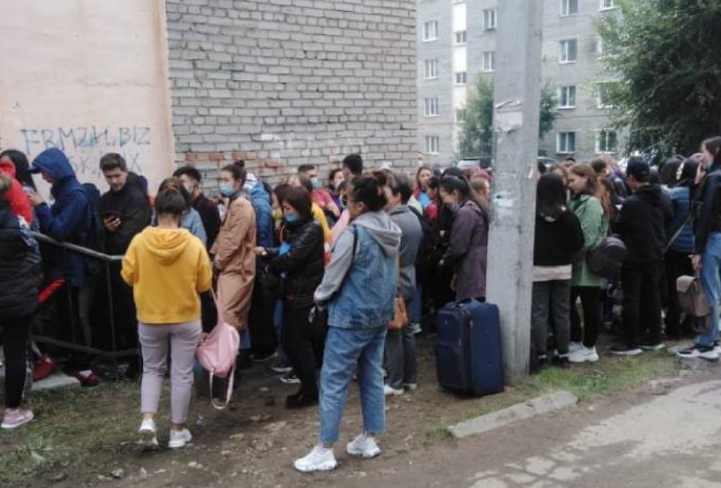 Жители Бурятии возмутились очередью в медицинский пункт Бурятского госуниверситета. По словам автора фото, опубликованного в паблике «Аноним 03», студенты собрались здесь, чтобы оформиться в общежитие университета. Кто-то стоит рядом со здравпунктом вовсе с чемоданом.