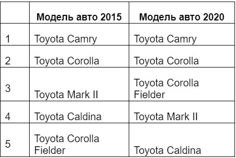 В Бурятии топ-5 в продаже автомобилей на Дроме за 2015 год и 8 месяцев 2020 года выглядит так: