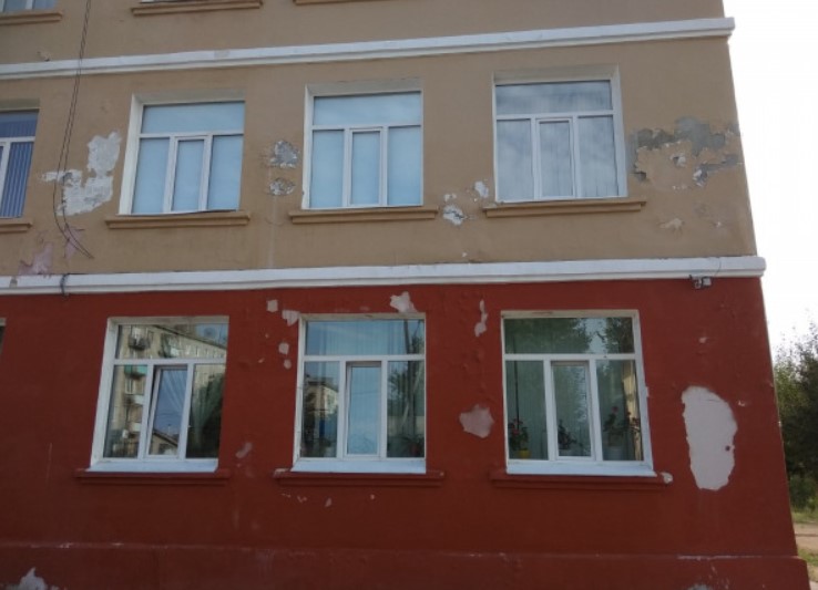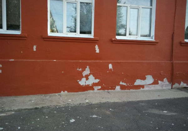 Работы по ремонту фасада здания, монтажу водосточной системы выполнены с нарушением технологии, вследствие чего произошло разрушение штукатурки, водостоков, отслаивание шпатлевки и краски. В полном объёме не завершена окраска фасада здания, не соблюдена технология укладки линолеума.