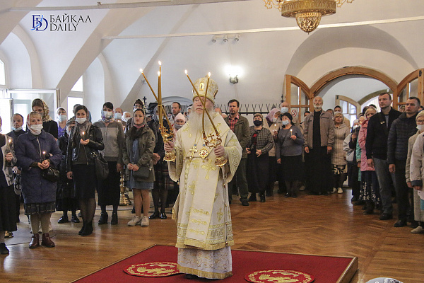 Сегодня в 16.00 митрополит Иосиф совершит ещё одно богослужение (неделя 14-я по Пятидесятнице. Глас 5-й. Положение честно́го пояса Пресвятой Богородицы — Свято-Троицкий храм Улан-Удэ. Всенощное бдение).