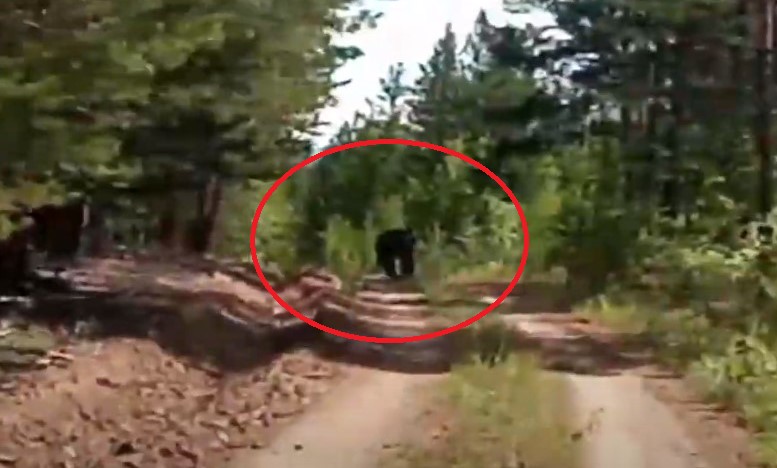 При патрулировании лесов в местности Харьялта сотрудники Куйтунского лесничества заметили косолапого, который бежал по лесной дороге.