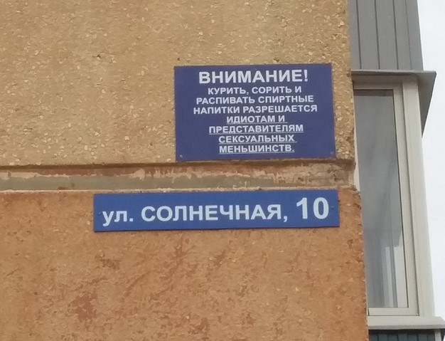 «Курить, сорить и распивать спиртные напитки разрешается идиотам и представителям сексуальных меньшинств».