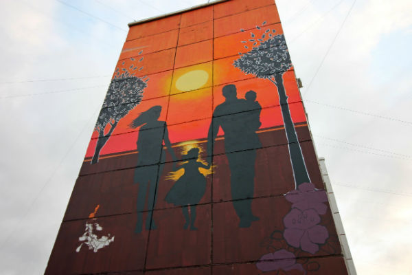 В Улан-Удэ на улице Жердева, 40 появилась настенная флуоресцентная картина высотой в девять этажей. Настенная картина посвящена семейным ценностям, сообщили в комитете городского хозяйства.