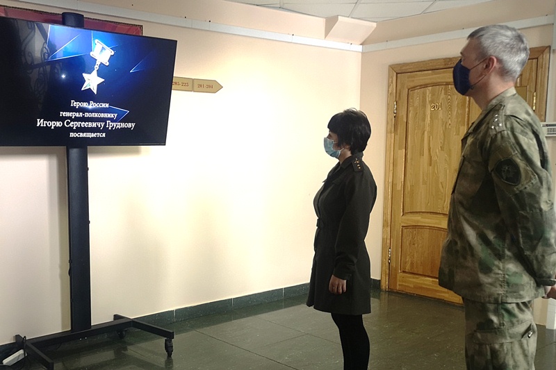 В территориальном управлении Росгвардии почтили память Игоря Груднова минутой молчания. В течение дня на экране демонстрируется документальный фильм, посвящённый героическому пути служения Отчизне Героя России.