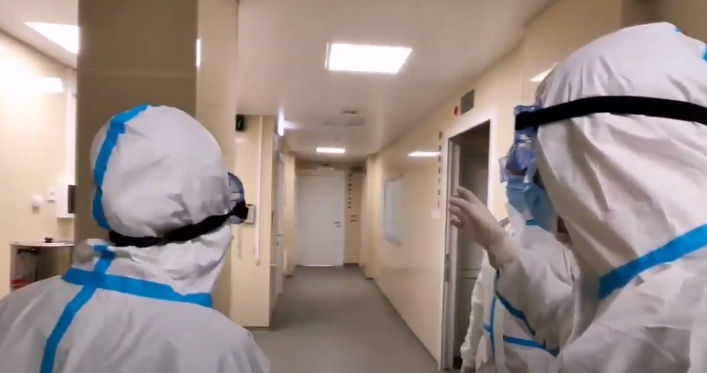 Половина коечного фонда госпиталя выделена под размещение гражданских пациентов коронавирусом. Пациенты довольны получаемым лечением и говорят о положительной динамике самочувствия.