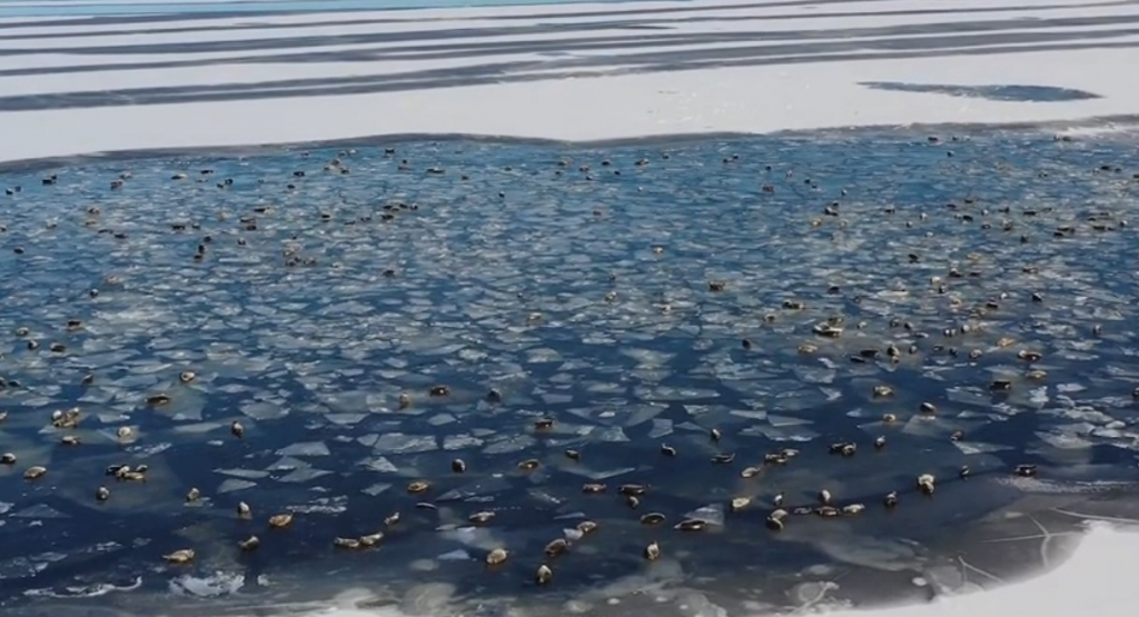 Также специалисты опубликовали в соцсети видео нерп на льду.