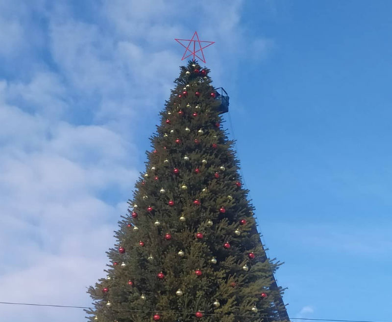Сегодня на верхушку ёлки был установлен двухметровый макет будущей большой звезды.