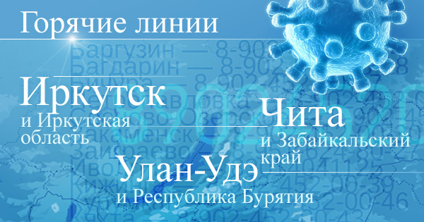 Редакция ИА «Байкал-Daily» собрала в один список все телефоны «горячих линий», которые могут понадобиться жителям во время проходящей сейчас пандемии. Здесь сосредоточены телефоны по трём регионам – Иркутской области, Республике Бурятия и Забайкальскому краю.