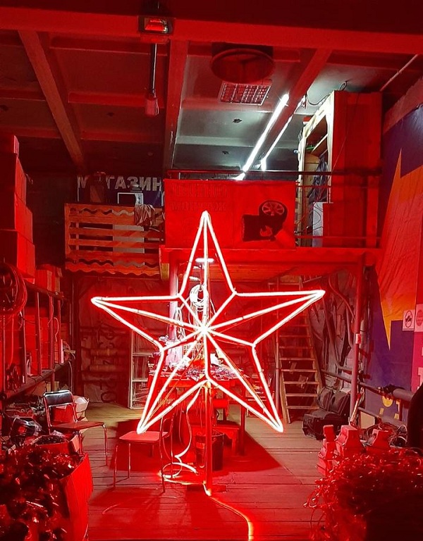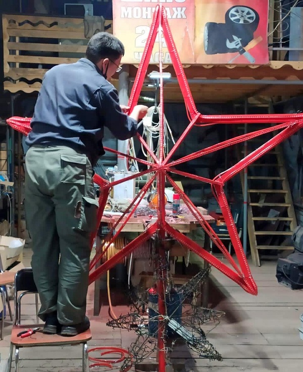 По просьбам горожан МБУ «Горсвет», подведомственное учреждение комитета городского хозяйства, изготовило новую звезду из алюминия, и украсило её красными светодиодами.