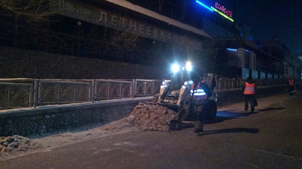 С шести часов утра на уборку вышли 135 дворников. Вместе с ними убирается и вывозится снег с обочин на самосвалах. Также ускоряет погрузку и уборку снега специальное приспособление на трактор – роторный снегопогрузчик.