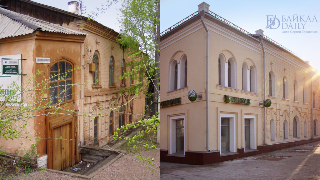 В этом двухэтажном каменном здании, построенном в 1870-х годах, когда-то размещался легендарный «Пти-Отель». Именно в нём останавливался Антон Павлович Чехов в 1890 году во время путешествия на остров Сахалин. А в 1924 году в этом доме была открыта первая на территории Бурятии государственная трудовая сберкасса №301. В наши дни здесь по-прежнему отделение СберБанка.