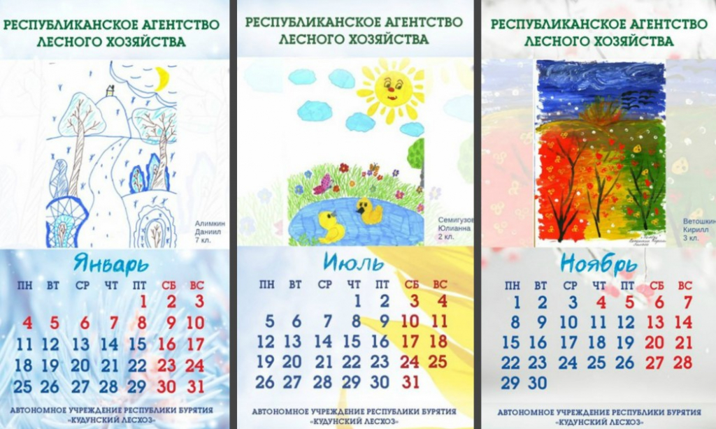 В Кижингинском районе Бурятии сотрудники Кудунского лесхоза совместно со специалистами Хуртэйского центра образования провели конкурс рисунков для формирования календаря на 2021 год.