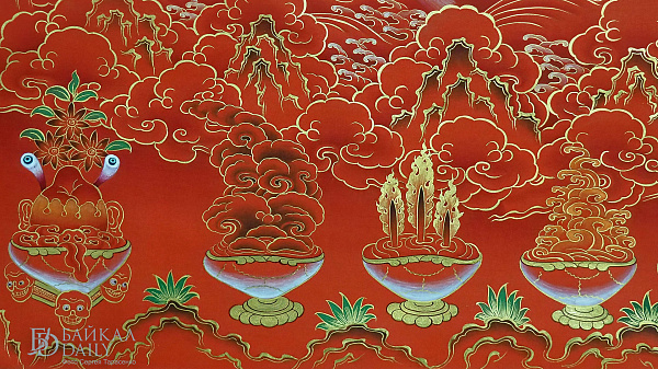 В экспозиции представлено искусство традиционной буддийской живописи «танка» выполненные художником за последние пять лет. Уникальной частью экспозиции являются материалы, из которых выполнены живописные полотна – это минералы (киноварь, лазурит, малахит), растительное сырье (шафран, индиго, кошениль) и чистое золото (999,9 проба).