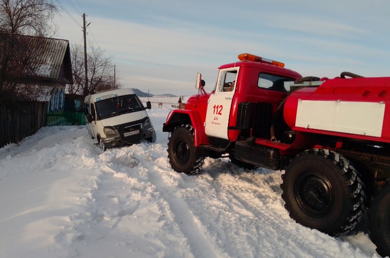 Эвакуировать транспорт на дорогу не получилось ни с помощью автомобиля, ни с помощью трактора. Тогда на помощь пришли сельчане, в том числе добровольный пожарный Иван Попов, который прибыл на пожарном автомобиле.
