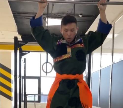Житель Бурятии оригинально станцевал ёхор – молодой человек в национальном костюме воспроизвёл движения народного танца, вися на перекладине. Также в процессе «танца» он показал эффектные трюки.