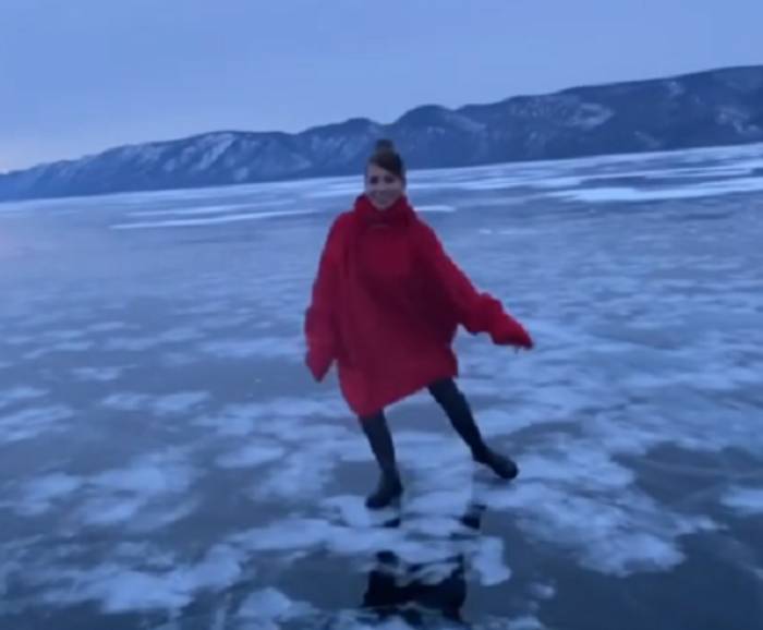 Также она опубликовала видео с Байкала, где прогуливается по льду, позирует на камеру и весело проводит время.