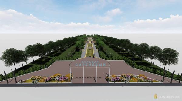 Помимо посадки сирени, на территории бульвара планируется высадить 146 деревьев и установить клумбы с цветами. Также с двух сторон архитектор предлагает установить арки с названием бульвара.