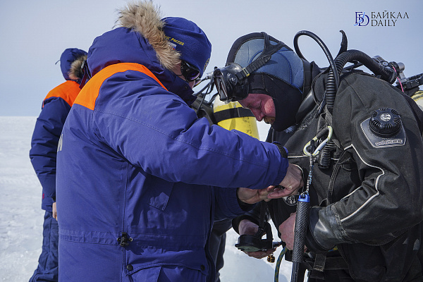 - Подобные тренировки мы проводим регулярно, так как половина водолазных работ выполняется спасателями нашего подразделения подо льдом. Как правило, к сожалению, все они связаны с поиском и подъёмом утонувших людей. Водолазные работы в надголовной среде – это особый, сложный вид работ, связанный с погружением в закрытое пространство, выход откуда можно совершить только в одном месте. Водолаз находится на страховке. Погружения под лёд Байкала имеют свою специфику. Если год снежный, то видимость плохая. Достаточно темно. Если же лёд чистый – работать легче, - поделился руководитель занятий, спасатель международного класса Байкальского поисково-спасательного отряда МЧС России Дмитрий Дмитриев.