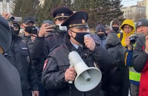 - В стране должны прекратить политические репрессии, мы должны мирным путём сказать, что мы против происходящего. Мы за мирный протест. Мы хотим, чтобы молодым у нас была дорога. А ваша власть, которую вы защищаете, топчет нашу Конституцию. Люди не имеют ни социальных гарантий, ничего. Мы сейчас на всю страну, на весь мир заявляем свою солидарность с Навальным. Мы не допустим политической диктатуры.