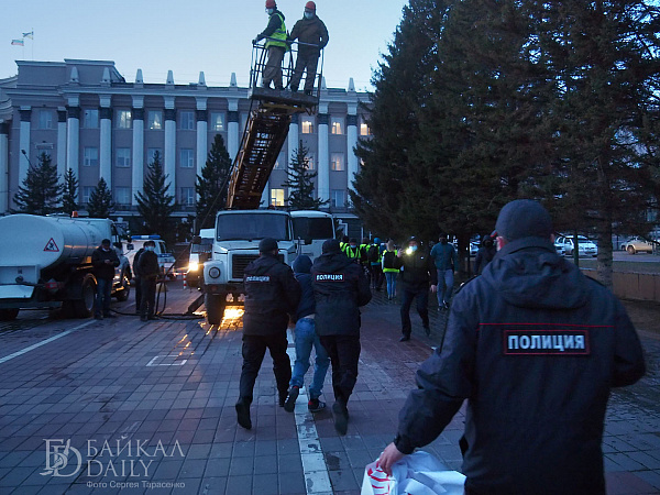 По всей площади дежурили полицейские. Активисты сообщили, что видели начальника управления организации охраны общественного порядка МВД Бурятии Виликтона Соднопова. Главы МВД по Бурятии Олега Кудинова, который на аналогичной предыдущей акции лично участвовал в наведении порядка, на этот раз не наблюдалось.