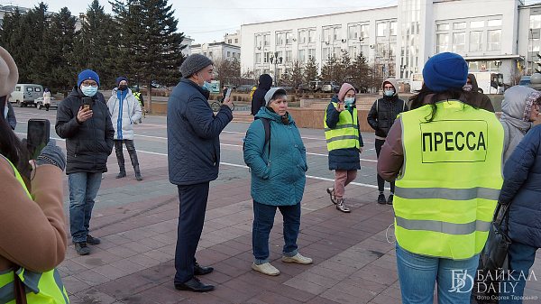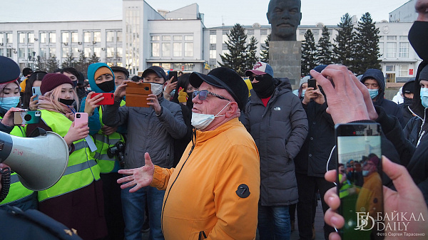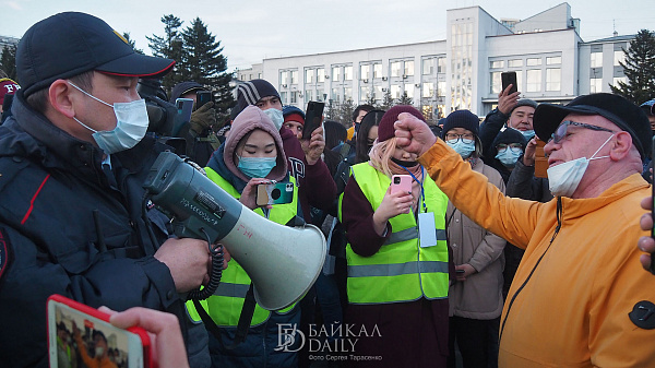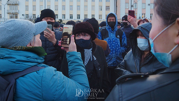 Произошла первая стычка между активисткой Натальей Филоновой и замначальника управления организации охраны общественного порядка МВД по Бурятии Александром Межениным. Филонова произнесла пламенный спич, почему здесь сегодня собрались люди, крикнув Меженину: «Вы отрабатываете крошки с барского стола!»