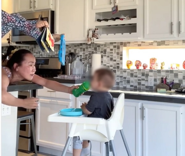 Баярма ловко управляла всеми предметами, которые она держала, а малыш наблюдал за ней. Под видео она написала, что это завтрак, поставив хэштеги #нашибудни #буднимамы.