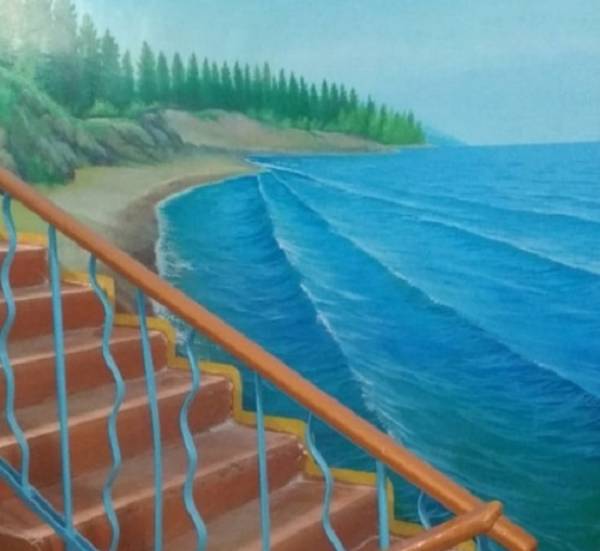 - Идея была моего отца, Геннадия Александровича Бадмаева, он в своём ТСЖ первый нарисовал вот эти картины, после этого мы начали более масштабно это применять, скажем так, в управляющих компаниях. Сначала с нами работал один художник, сейчас их несколько. Теперь практически каждый ремонт подъездов без картин не завершается. Конечно, художники немного отстают от маляров: сначала ремонт делают, потом картина появляется месяца через 2-3. И при каждом ремонте художники оставляют несколько картин обязательно, - продолжил Алексей Бадмаев.
