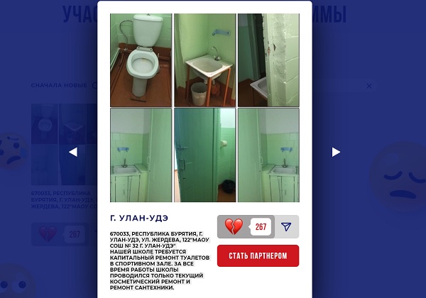 «Нашей школе требуется капитальный ремонт туалетов и спортивном зале. За всё время работы школы проводился только текущий косметический ремонт сантехники», - написали авторы заявки по школе №32.
