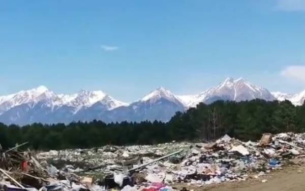 Жительницу Иркутской области шокировала гигантская свалка в Тункинском национальном парке на фоне Саянских гор. Видео женщины опубликовал паблик ves_ulan_ude_.