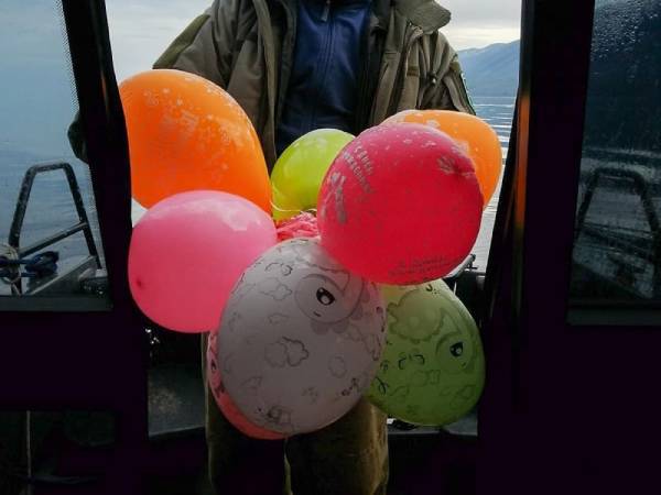 Государственные инспекторы Забайкальского нацпарка в Бурятии обнаружили плывущий в Байкале чей-то подарок на день рождения – связку разноцветных шаров.