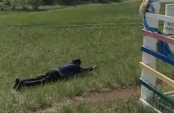 Директор турфирмы, бывший замминистра спорта Бурятии Эрдэни Дымчиков запечатлел на видео бабушку, совершавшую необычную для республики буддийскую практику. 80-летняя пожилая женщина совершала гороо (круговой обход вокруг ступы), но не пешком, как все другие верующие, а простираниями прямо по земле.