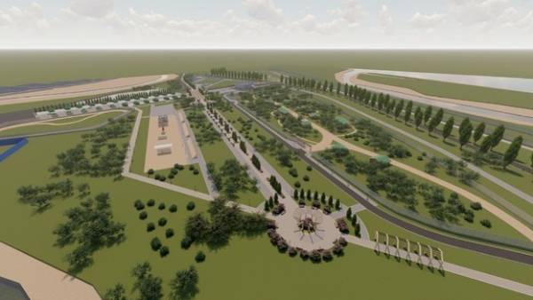 Также планируется благоустройство всей территории парка: тротуарные дорожки, устройство общественного туалета, системы освещения, установка скамеек и урн.