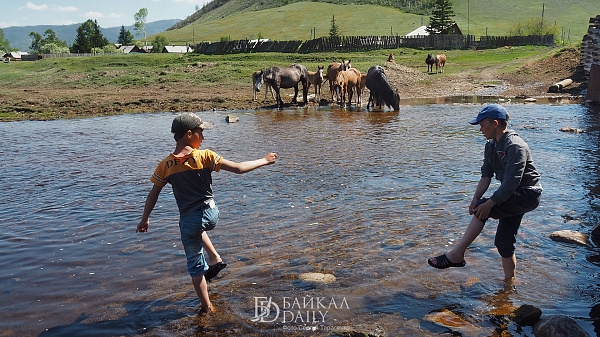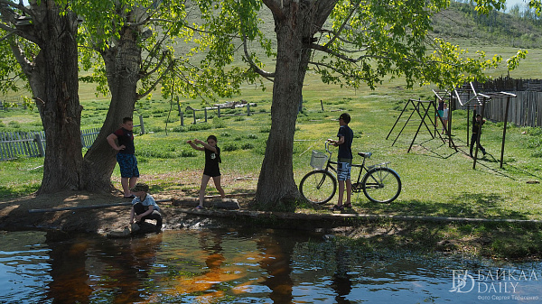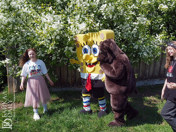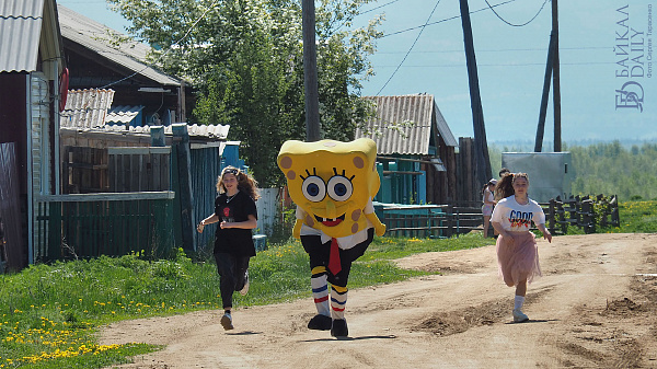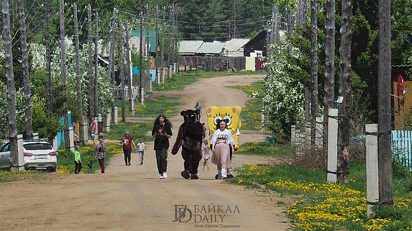 Остановившись в деревне Шапеньково поснимать цветущую черёмуху, внезапно обнаружили шагающего по улице в окружении детворы медведя! Оказалось, так администрация поселения «Баргузинского» поздравляла детей с праздником детства. 1 июня провести мероприятие не удалось из-за непогоды, поэтому перенесли уличное представление на несколько дней, дождавшись тепла. Раздавал конфеты ребятне вместе с медведем также мультяшный персонаж Спанч Боб.