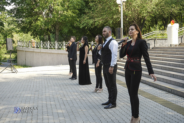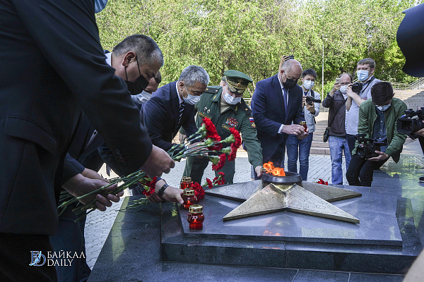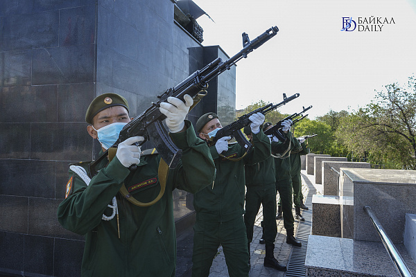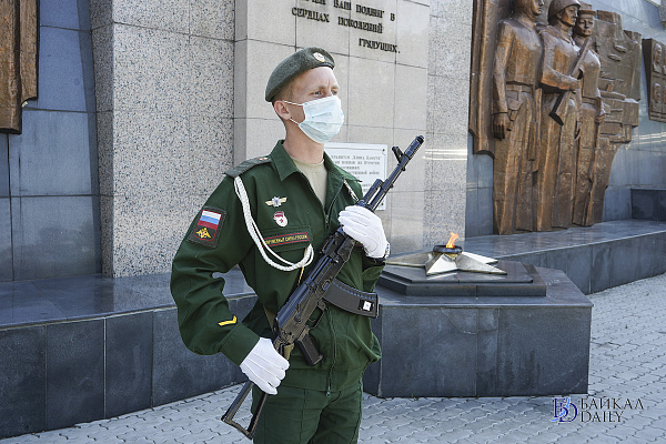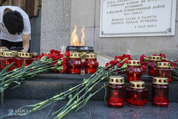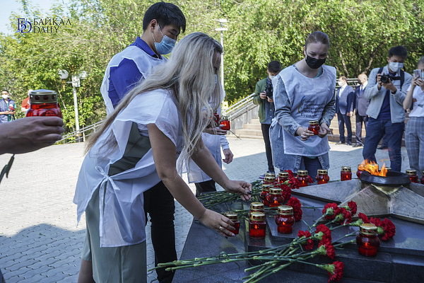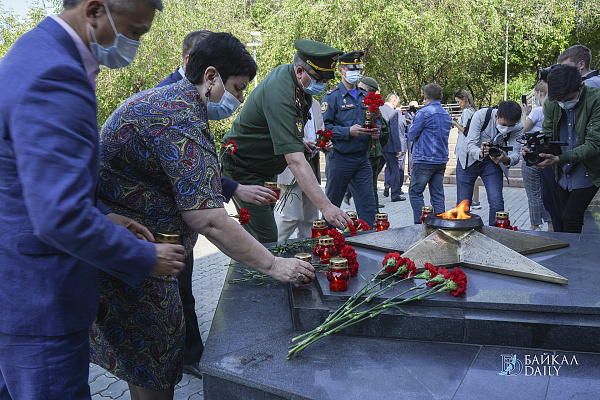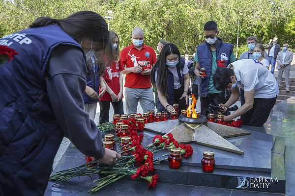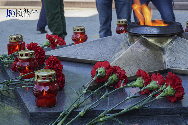 На Мемориале Победы с утра выстроен почётный караул. К Вечному огню улан-удэнцы несут цветы и зажигают здесь свечи как символ скорби и вечной памяти о погибших в Великой Отечественной войне. Состоялась минута молчания.
