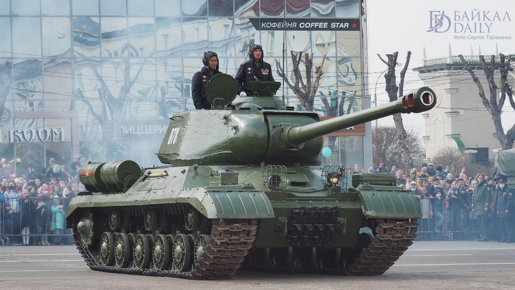 Тяжёлый танк ИС-2 был снят с постамента в посёлке Сосновый Бор и был восстановлен и поставлен на ход мастерами отдельного ремонтно-восстановительного батальона ВВО. 9 мая он впервые принял участие в параде Победы на площади Советов в столице Бурятии.