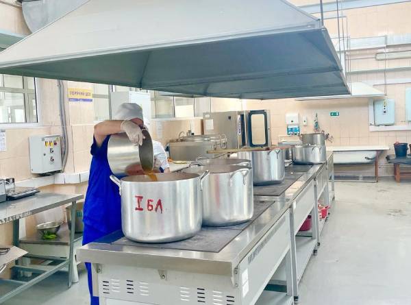На пищеблок легла дополнительная нагрузка. Работникам нужно не только своевременно и качественно приготовить большой ассортимент блюд, но разложить всю еду в одноразовые контейнеры и упаковать их в термотару для транспортировки на завтрак, обед, полдник и ужин. Кроме того, по заказу готовят и комплексные обеды для персонала. Питание проходит строгий контроль диетологической службы. Заведует ей врач-диетолог, главный внештатный диетолог минздрава Бурятии Сэсэгма Мудаева.