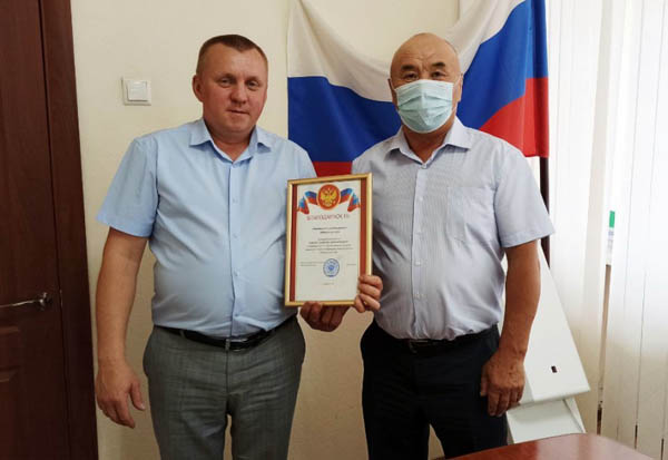 Руководство министерства природных ресурсов Забайкальского края вручило благодарственное письмо Шойробу Бороеву за активное участие в мероприятиях по снижению численности волка на территории Агинского района.
